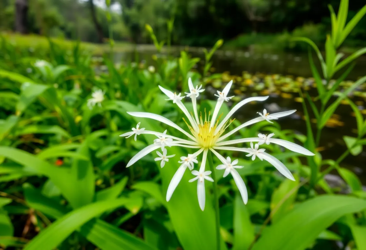 News Summary The Rocky Shoals Spider Lily, a threatened aquatic plant, is blooming along the Congaree River in Columbia, South Carolina. Despite some damage from