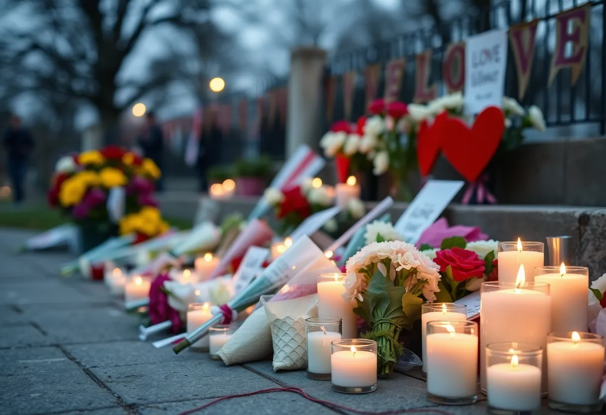 Memorial scene honoring Chad Wyatt Snelgrove with flowers and candles.