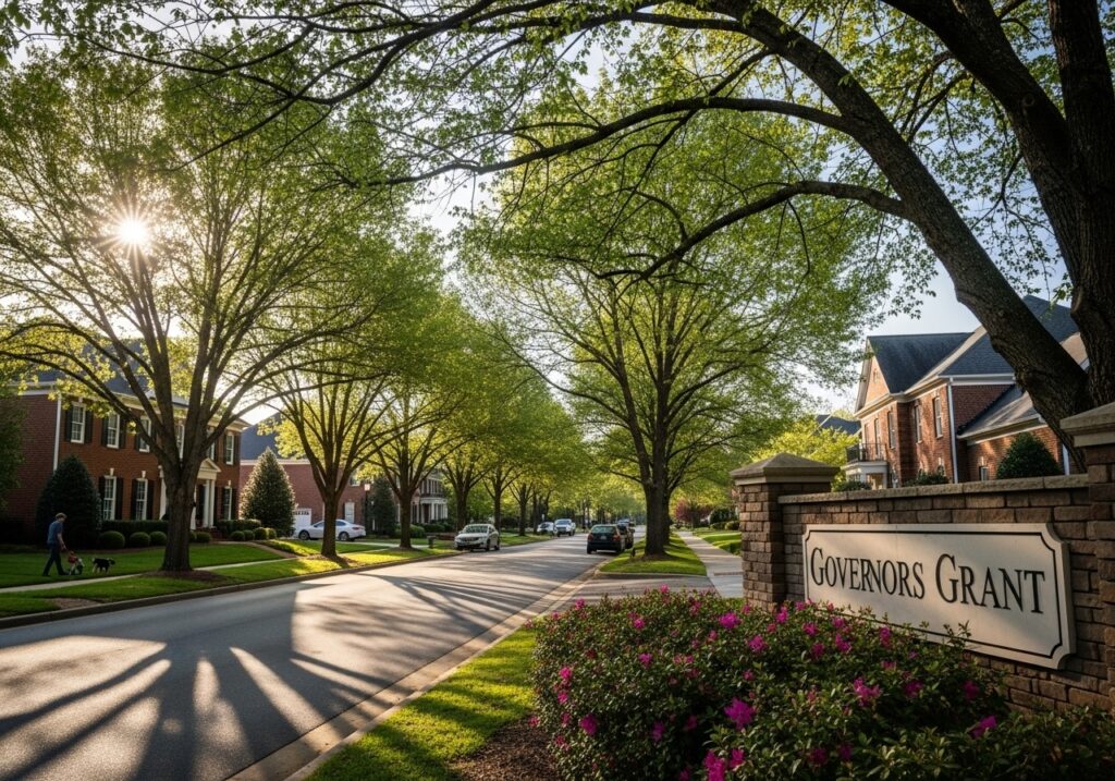 Governors Grant is an established, family-friendly neighborhood located in Lexington, South Carolina, just off Old Chapin Road. It features nearly 400 custom and semi-custom homes on spacious lots ranging from 0.5 to over 2 acres, with mature trees and landscaping providing a peaceful, suburban atmosphere. The community is known for its vibrant yet serene setting, proximity to Lake Murray (less than 1 mile away), and convenient access to downtown Lexington (about 4 miles). Homes typically range from 2,300 to 5,000 square feet, offering ample space for families.