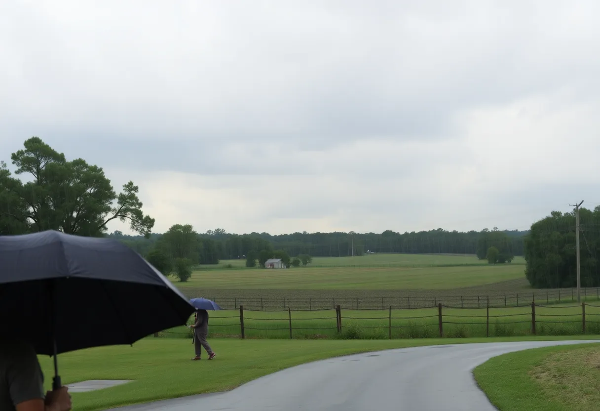 Residents of Lexington, South Carolina are facing a gloomy day characterized by overcast skies and frequent rain showers. With temperatures around 61°F (16°C) and an expected high of 64°F (18°C), individuals are advised to prepare for wet conditions with an 89% chance of precipitation and potential localized flooding. A travel advisory has been issued, but local emergency services report no significant disruptions in business or public services. Today’s rain is beneficial for local crops, marking a good day for agricultural pursuits.
