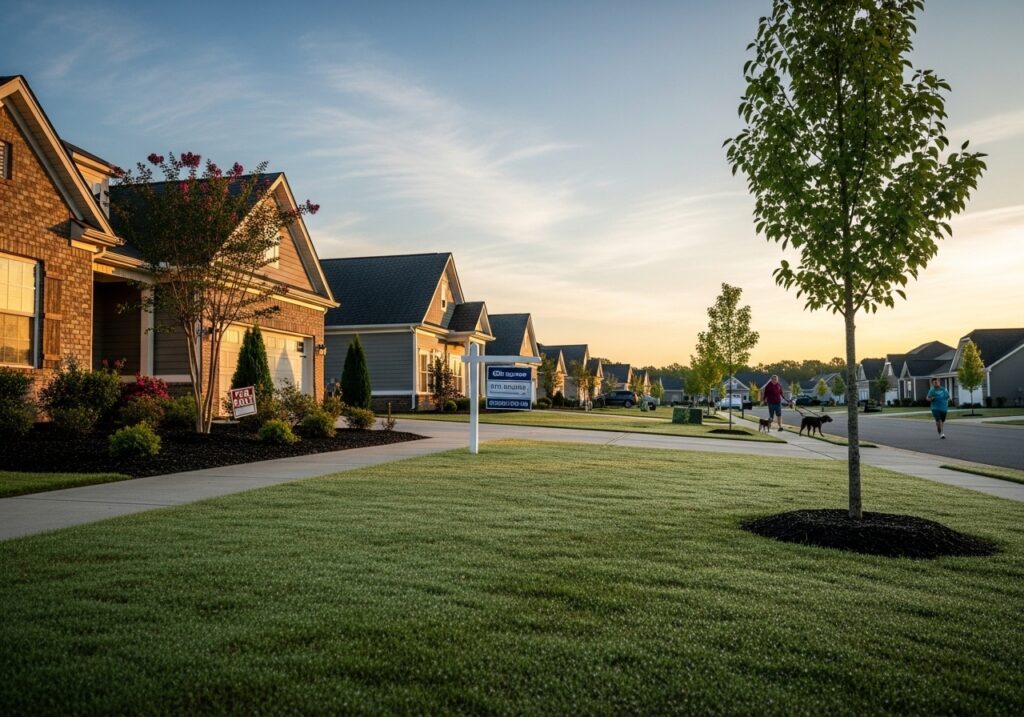 Persimmon Grove is a charming, growing community in Lexington, SC, located off Barr Road, featuring new homes starting from 1,300 sq ft, a community pool, playground, and family-friendly amenities in a peaceful setting.