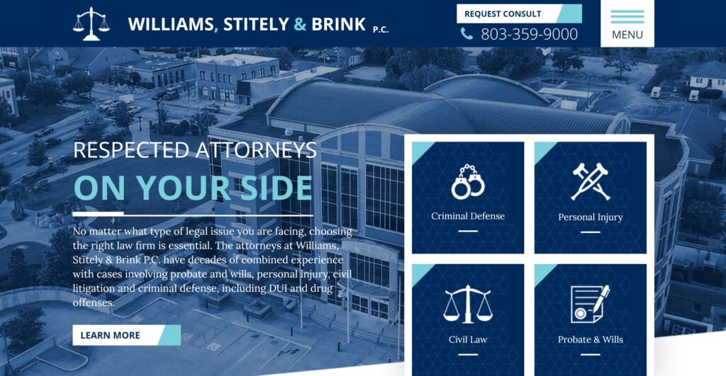Williams, Stitely & Brink, P.C., is a Lexington, South Carolina law firm. It was founded in 1978 and represents clients in various complex legal matters, including criminal defense, personal injury, wills and probate, and civil litigation. The attorneys at Williams, Stitely & Brink, P.C., have decades of combined experience and have successfully represented clients in various legal matters.